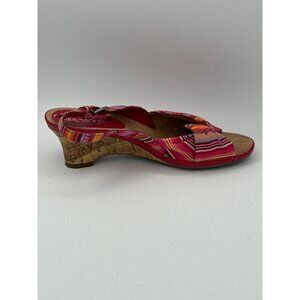 These Aerosoles wedge sandals feature a vibrant multicolor striped design that adds a pop of color to any outfit. The open-toe style and cork wedge provide a comfortable and stylish look. Perfect for casual outings or social gatherings, these sandals offer both comfort and style for warm-weather months.