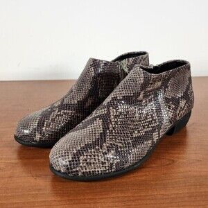 Aerosoles Womens Sophia Black Snake Print Round Toe Ankle Booties Size 7.
