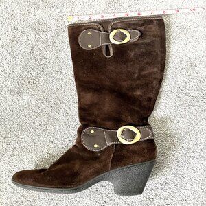 Aerosoles Wonderling knee-high boot in brown suede with a wedge heel and gold-tone hardware, double zipper