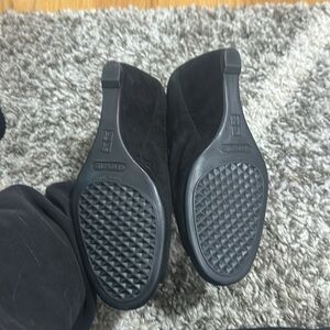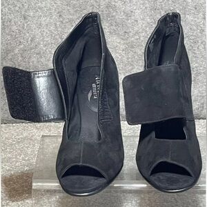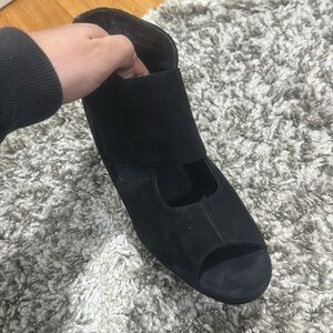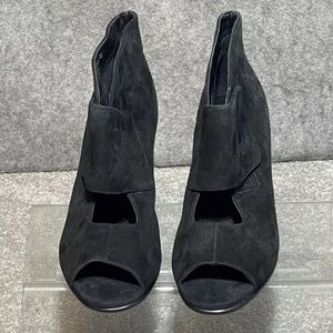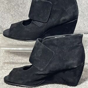 Aerosoles Y2K Suede Black Booties Womens 8 1/2 Wedge Heel Open Toe Goth Witchy