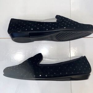 Aerosoles black fabric loafers with gunmetal studs. Padded. Traction soles. 8.5