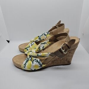 Aerosoles lemon novelty print cork wedge comfort sandals size 9