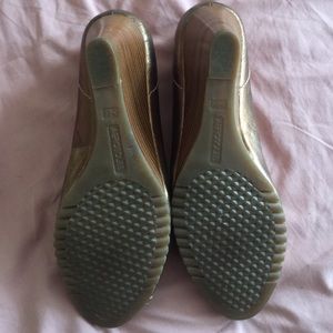 Awrosoles, Sz. 10 in Bronze. Beautiful supple leather that really message as you walk. I bought 2 pairs in different colors. This pair has not been used more than twice.