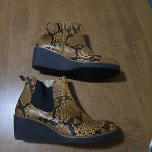 Aerosoles women's Brandi pull on ankle booties snakeskin wedge heels size 7.5