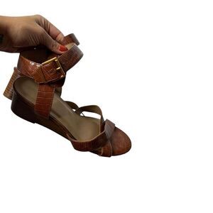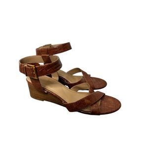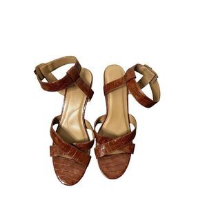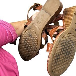 Aerosoles Brown Embossed Crocodile Sandals Size 12 Wedges Classic Summer Spring