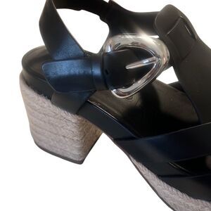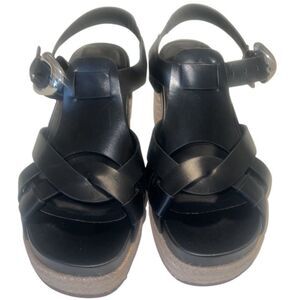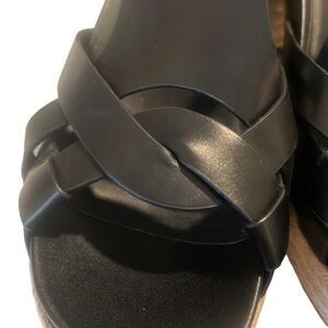 Aerosoles Chatham Black Leather Woven Block Heel Platform Sandals Size 8