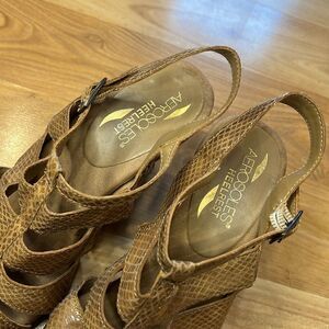 Great condition faux snakeskin heels with ankle buckle closure. Light signs of wear on foot bed. 3.5” heel height. Womens size 7