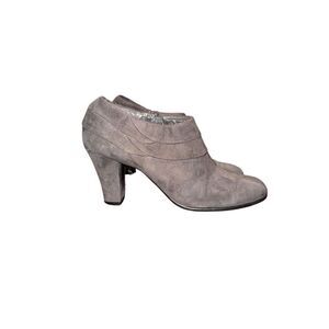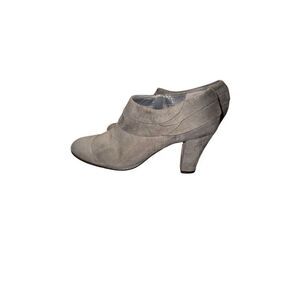 Grey side zip low booties. Faux suede. The heels have some signs of wear, see photos.