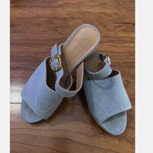 Aerosols Women’s 9 Wide Fit Denim Blue Gold Buckle Slip On Mule Block Sandal