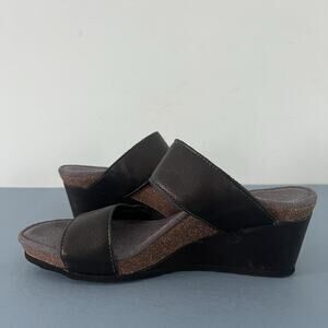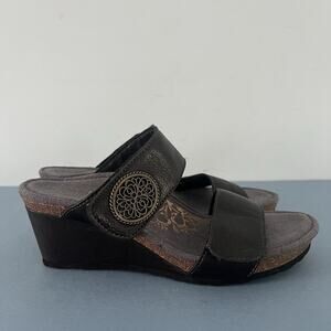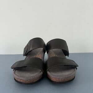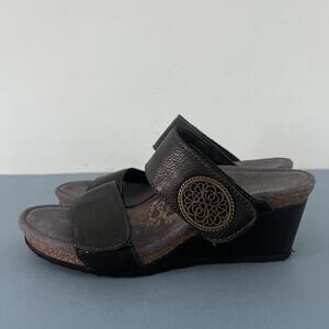 Aertrex Marilyn Black Leather Slide Wedge Sandals