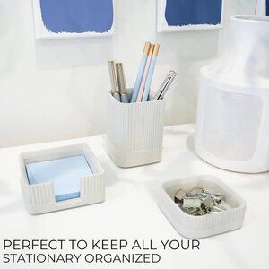 Ultimate Set To Stay Organized & Inspired: s desk organizer set including a 2.75x2.75x3.75 pen holder, a 3.5x3.5x1.5 notes holder and a 3x3x1.1 metal clip holder is here for you to create a welcoming area dedicated to focus, learning, creating and thriving