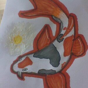 Koi drawing (thick paper), orange sunshine koi, ideal decoration for kid bedroom or art room(please frame when arrived)