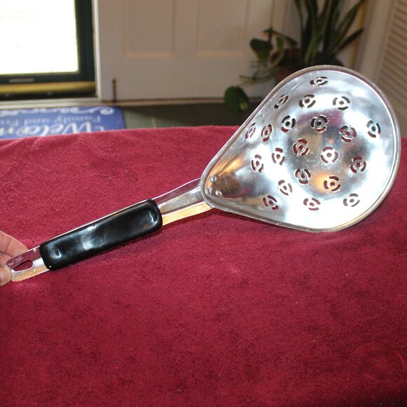 Aeternum Italy stainless steel Colander/pasta scoop with black handle