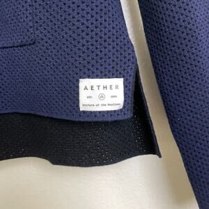 This listing is for an Aether Women's Baja Mesh Hoodie. Total Eclipse (Blue). Pullover. Drawstring at the hood. Pocket at the lower front. Polyester, Viscose, Wool, Polyamide blend. Logo at the lower front hem towards the side.