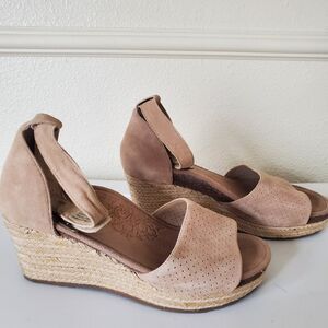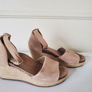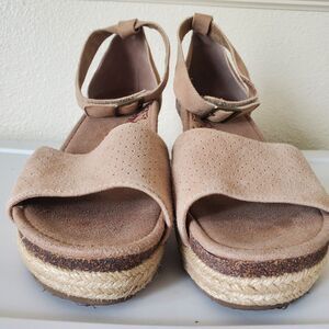 Aetrex Beige Suede Miley Ankle Strap Espadrille Wedge Heeled Sandals Size 9-9.5