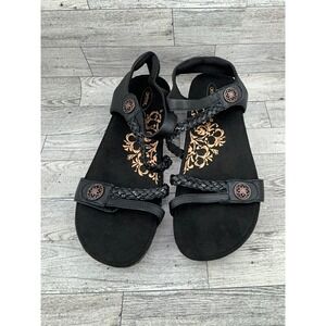 Aetrex Black Leather Braided Strap Cork Comfort Sandals Size 11 Wide