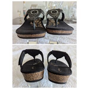 Aetrex Emily Silver Circle Studded Black Thongs Sandals Flip Flop