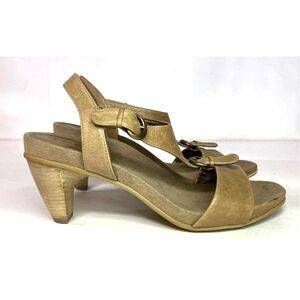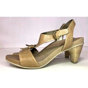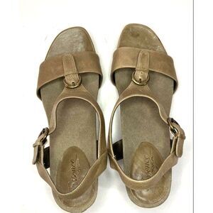Aetrex "GIA" Desert Tan Leather Tanya T-strap Sandal Heel- Women's Size 9- New