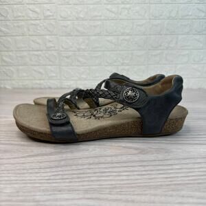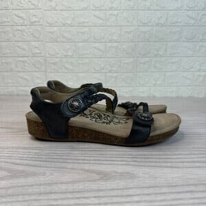 Aetrex Jillian Braided Quarter Strap Sandals Sz 8.5 Navy Leather Slingback Flat