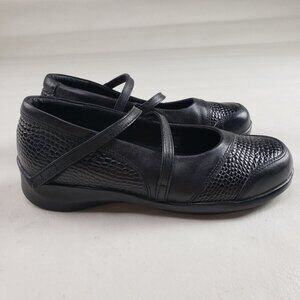 Aetrex Julia Mary Jane Shoe Womens 6.5 X Wide Black Leather Hook Loop Comfort