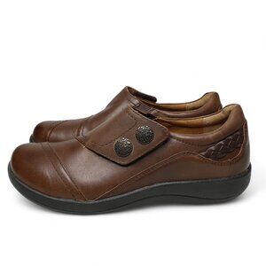 Aetrex Karina Leather Loafers Women's Monk Strap Engraved Button Brown Shoe 7