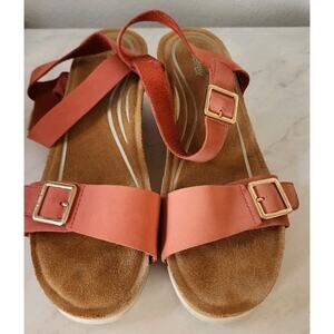 Aetrex Lexa Orthotic Strap Wedge Sandal Coral Leather Sz 9-9.5 Cork Sandal