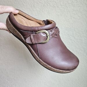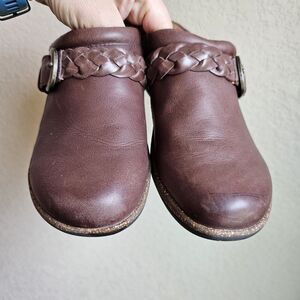 Aetrex Libby Braided Detail Leather Mule Clogs Brown Slip On Women Shoes Size 7