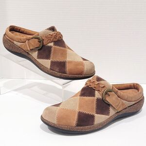 Aetrex Libby Clogs Size 40 Womens 9-9.5 Patchwork Boho Brown Mules Slip On Shoes