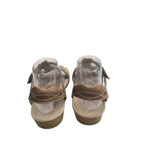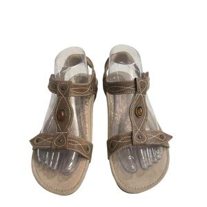 Aetrex Women Size 7 Lori Sandals Slingback Brown Leather Beaded Summer Casual. T strap cork wedge. Pre-owned