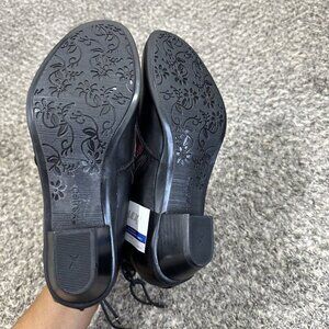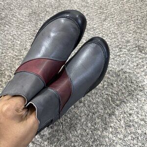 Aetrex Samantha Leather Ankle Boots Patchwork Gray Black Red Zip 8.5 NEW READ