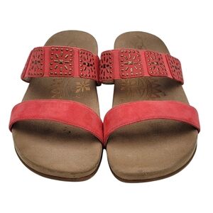 Aetrex Sandals Women 10.5 to 11 Red Double Straps Embellished Memory Foam