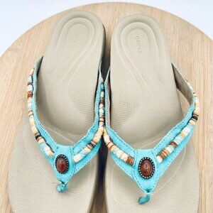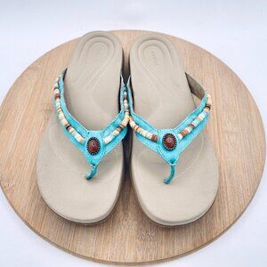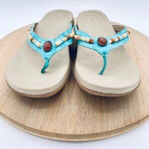 Aetrex Sandals Womens 9/9.5 Blue Orthopedic Flip Flop Beaded Boho