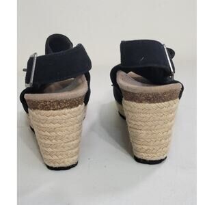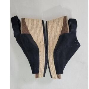 Aetrex Sandals Womens Size 6-6.5 Black Leather Open Toe Espadrille 3in Heal NWOT PERFECT CONDITION NEW WITHOUT TAGS
