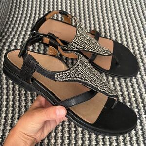 Aetrex Sheila sandal ES541 black grey/silver bead women’s shoe size 8.5