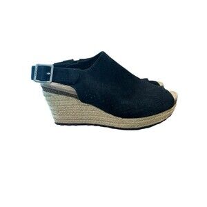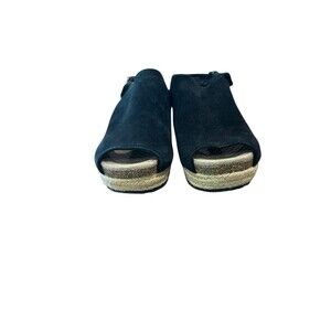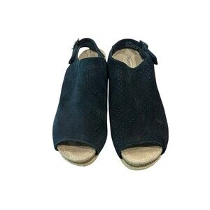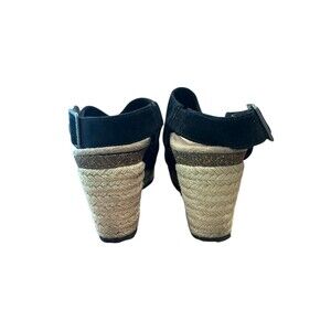 Aetrex Sherry Espadrille Sandal Wedge Heel Black Summer Size 7.5 Leather Suede
