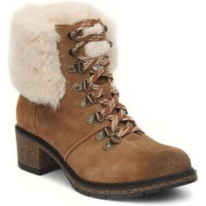 ✨ Aetrex Snow Boots Women Tan Leather Orthopedic Weather Warm Faux Fur Booties