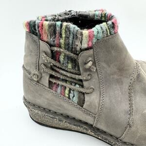 Aetrex Tessa Sweater Ankle Zip Wedge Comfort Bootie Grey Size 7.5/8 Officecore