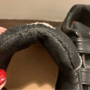 Pre owned with toe creases and minimal wear to left strap area seen in last picture