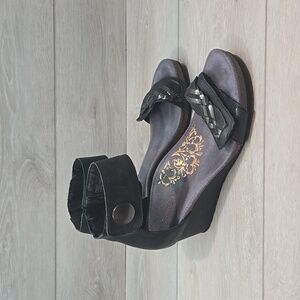 Aetrex Women Becca Strap Ankle Hook&loop Wedge Leather Sandals shoes sz 8.5
