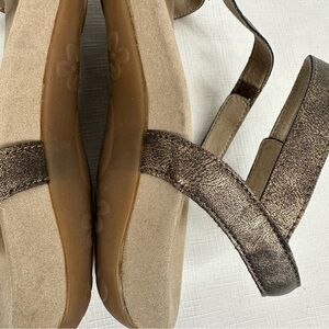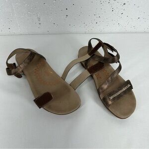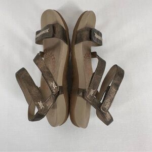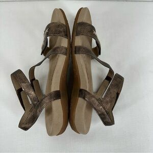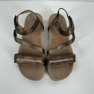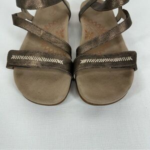 Aetrex Women's 40 (9-9.5) Gabby Bronze Adjustable Sandals. A couple of tiny spots on footbed and light wear to soles in very good condition.