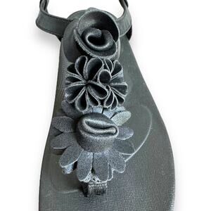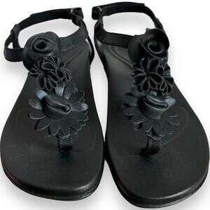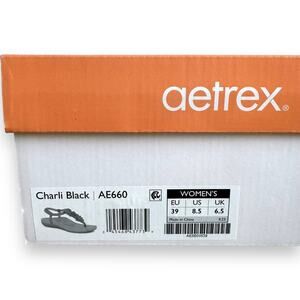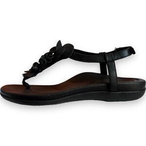 Aetrex Women’s Charlie Black Leather T-strap Thong Flat Sandal Size 8.5 NEW