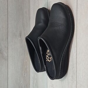 Comfortable and stylish black slip-on clogs perfect for everyday wear.