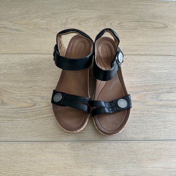Aetrex Women's Livia Adjustable Quarter Strap Wedge - Black
