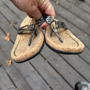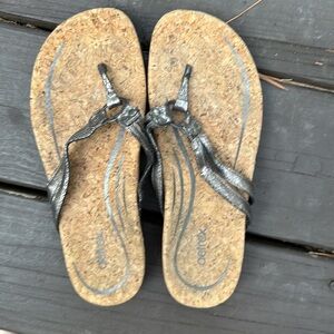 Aetrex Women's Metallic Silver Cork Sole Sandals size 7