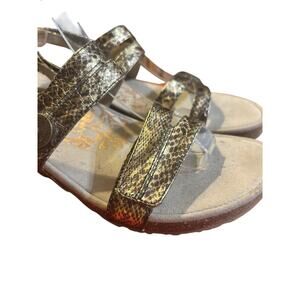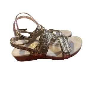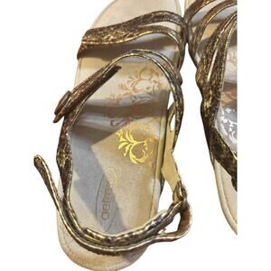 Aetrex Womens Sandals Size 10.5 US Metallic Gold Snake Print Hook Loop Leather