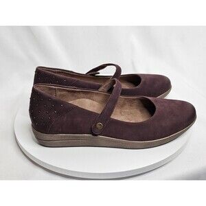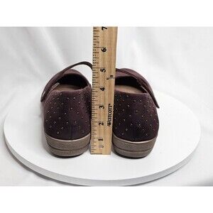 Aetrex Womens Size 9.5 Comfort Chunky Mary Jane Wine Nubuck Studded Wedge