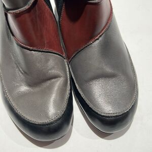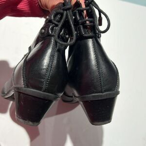 These ankle boots are in great preowned condition. The leather is still super soft and soft subtle. The heel measures approximately an 1 and 3/4”