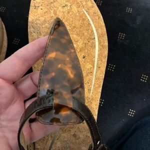 New Aetrex slingback thong sandal - patent leather tortoise straps, cork bottom - I have a ton of shoes that just don’t work for me anymore. I buy quite a few in hopes that they will fit me and my lifestyle - many have just a been tried on or worn a bit inside. Others don’t fit after my foot surgery :( Check out my closet for more items - bundle and save! (I will not respond to scammers who “can’t see all the photos” and ask to send to their phones!)