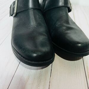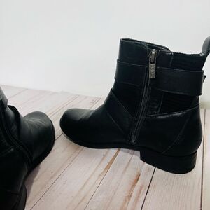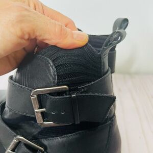 Aetrex Black Leather Buckle Knit Moto Chelsea Boots