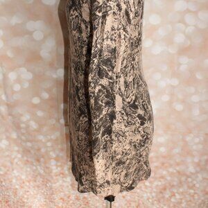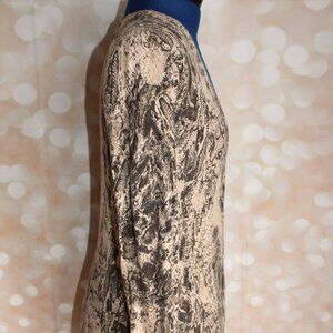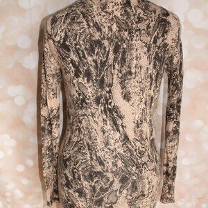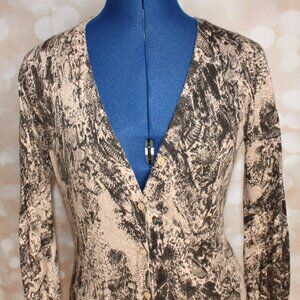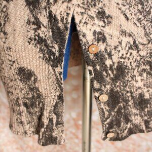 Aeuadani Women's Black Tan Print V-Neck Button-Up Angora Blend Tunic Sweater ~M~